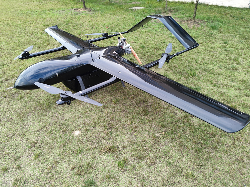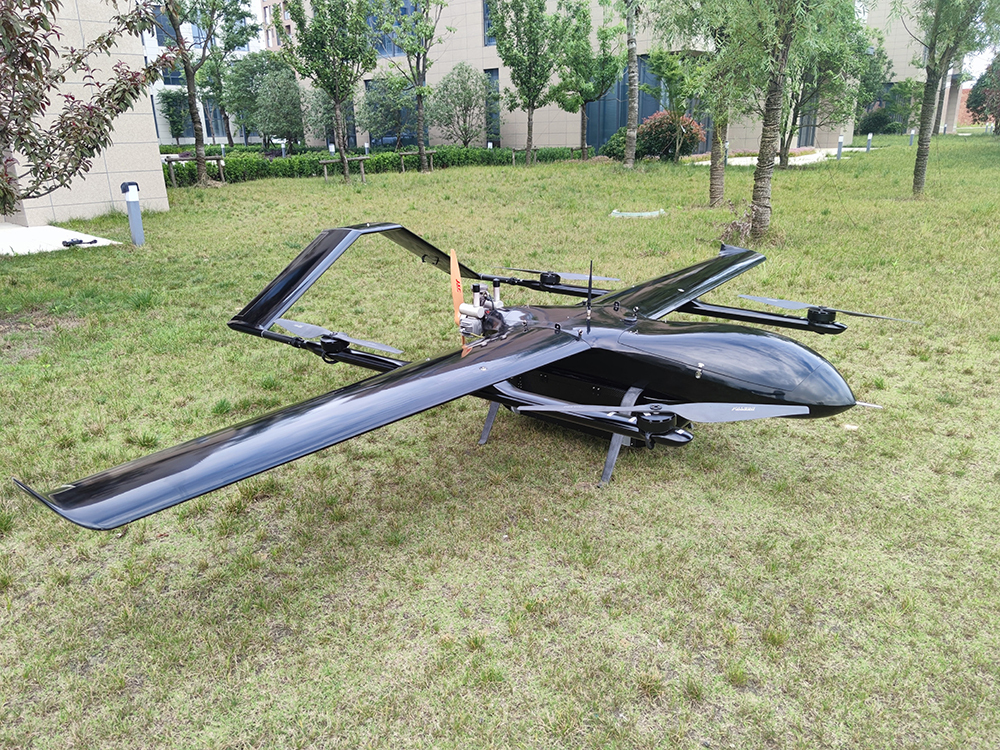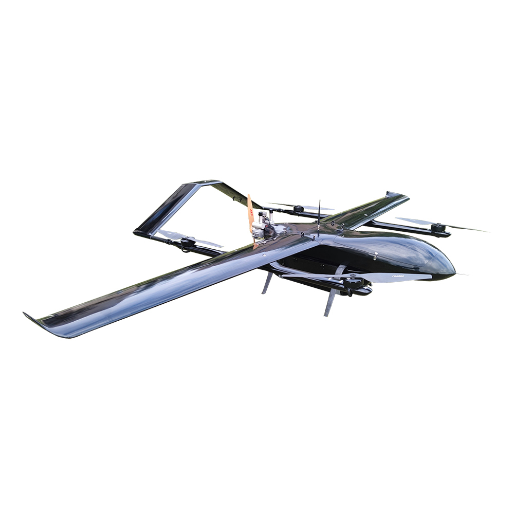Delivery VTOL UAV platform is an electric long-haul composite wing vertical take-off and landing drone independently developed by our company. The overall layout of the composite wing with fixed wing and four-rotor is used to solve the vertical take-off and landing of the fixed-wing UAV in a simple and reliable way. The difficulty of the fixed-wing UAV has the characteristics of long flight time, high speed, long distance and the vertical take-off and landing of the rotorless drone. The vertical take-off and landing mode greatly enhances the environmental adaptability of the drone platform. The man-machine platform can operate smoothly in complex terrain and densely populated areas such as mountains, hills and jungles, greatly expanding the scope of application of drones, and is an ideal choice for industrial-grade drones.